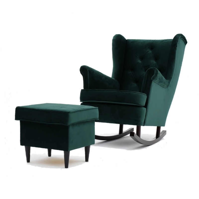 Fotel Uszak Glamour Bujany na Płozach to połączenie klasyki z nowoczesnym designem - idealny zarówno do eleganckiego salonu, sypialni, jak i przytulnego kącika do karmienia czy czytania.
