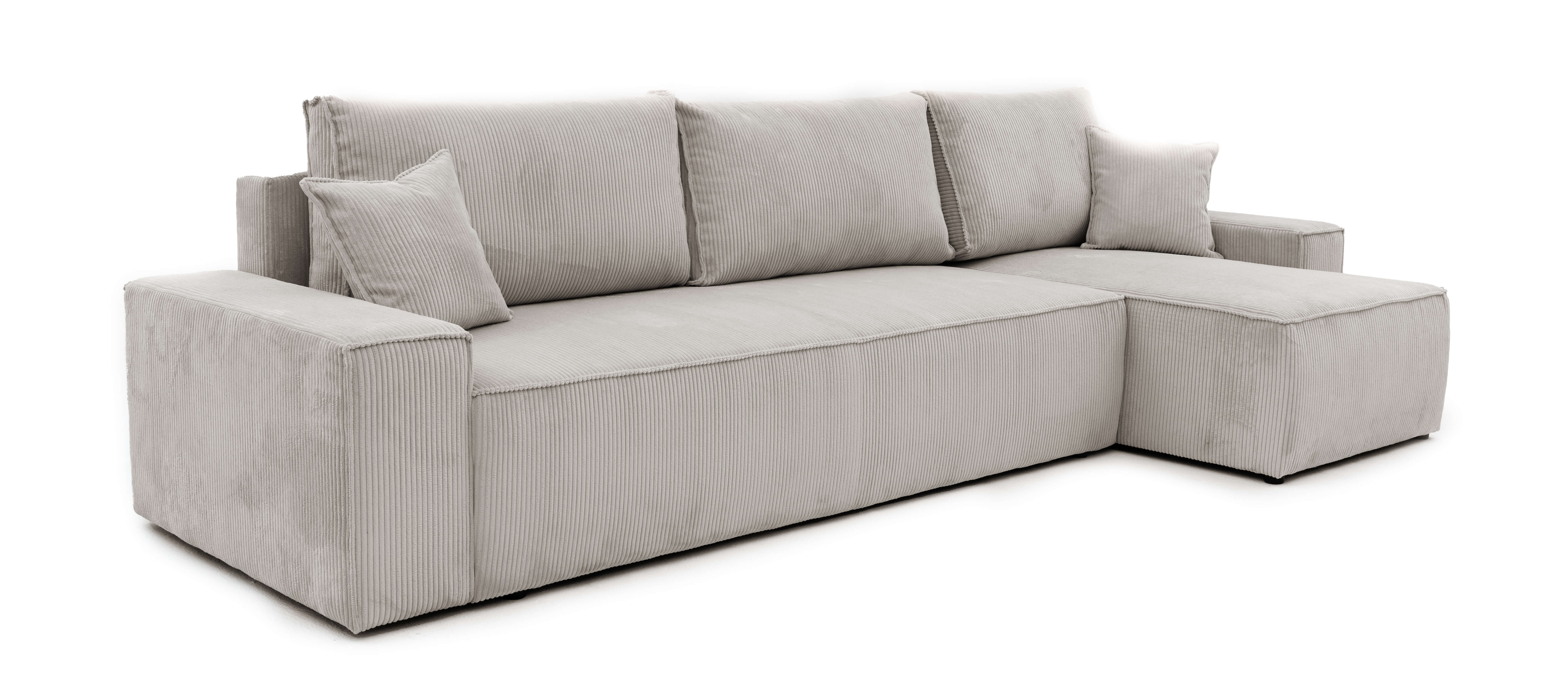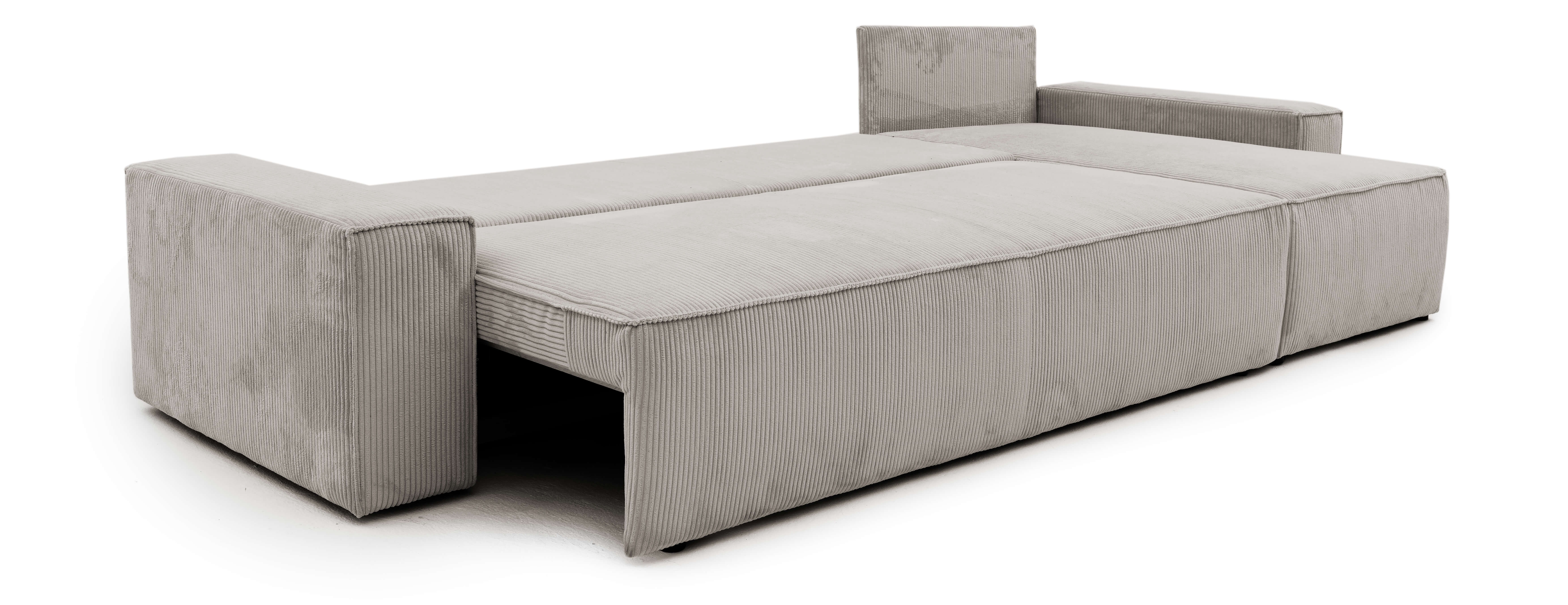 Solidny i masywny narożnik z funkcją spania BORA XL został wykonany w modnym, wytrzymałym i przyjemnym w dotyku sztruksie. Zanurz się w swojej ulubionej rogówce i oddaj długim chwilom relaksu.